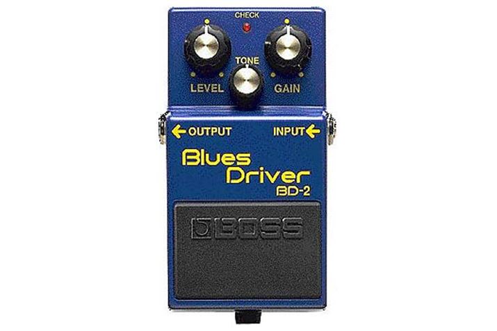 BOSS「BD-2 Blues Driver」。個性と汎用性を兼ね備え、いまやオーバードライブの名機の地位を揺るがぬものとしています。ローゲインセッティングでは演奏ニュアンスへの反応性が素晴らしく、クセをつけすぎないブースターとしてほかの歪みペダルやアンプをプッシュするのも得意。