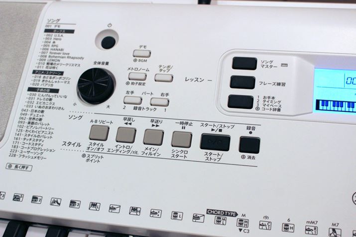 筆者も実際にEZ-300を触り、ライトガイド機能を体験してみました。鍵盤をタッチするタイミングよりほんの一瞬早く正しい鍵盤が光ることで、指の動きをナビゲートしてくれるのですが、実際に使ってみると鍵盤の光るタイミングが絶妙に計算されているのがわかります。