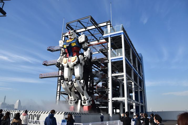なお、細かいことを説明すると、「RX-78F00 ガンダム」の動くパーツ(関節自由度)は24か所。質量は25t。「発進演出」(約8分間)および「格納演出」(約5分間)は、終日10:30〜20:30まで、毎時と毎時30分に観覧できる。将来、シーズンの特別演出も実施予定とか。
