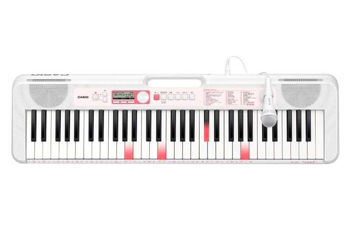 鍵盤が光って弾くところを教えてくれる、カシオの「光ナビゲーションキーボード」シリーズの1台です。本体には人気のアニメ曲や世界の童謡など多彩な120楽曲を内蔵しており、曲を再生すると、メロディーに合わせて鍵盤が赤く光って弾く場所を教えてくれます。楽譜が読めなくても、「自分で弾ける」体験を味わえるのがポイント。指1本で弾くことができる「らくらくモード」も搭載していますし、やさしいピンク色のカラーリングもかわいらしいので、初めて鍵盤楽器に触れる子供にピッタリ。