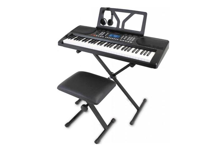 ボックス型の61鍵キーボードに、椅子、スタンド、ヘッドホンも付属するお得なオールインワンセット。ピアノのほか、管楽器やギター、民族楽器にシンセサウンドまで、さまざまな楽器をイメージした音色を300種類も内蔵しています。加えて、さまざまな音楽ジャンルのリズムパターンを合計300種類搭載。ピッチベンドも備えており、シンセに通じる機能性を楽しめます。本体カラーはブラックとホワイトの2色から選択可能。