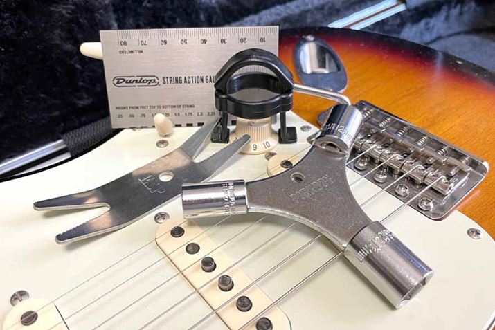 ここで使われるのは、各部のネジやナットのサイズに合わせた「ドライバー」「レンチ」「スパナ」など。そしてここにもやはり、ギター用にセレクトされていたり最適化されていたりするツールが用意されています。「複合レンチ」「マルチスパナ」「ノブプラー」などです。