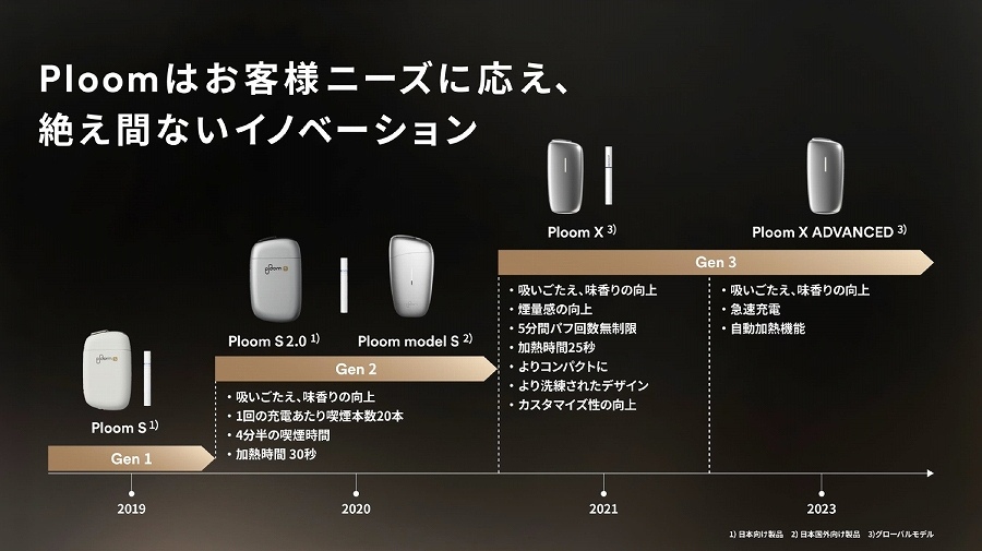 「プルーム」ブランドは、このように進化を遂げてきました。「プルームX アドバンスド」から進化したのが「プルーム・オーラ」です