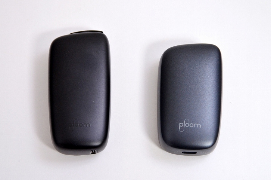 左が従来モデル「プルームX アドバンスド」で、右が新型「プルーム・キューブ」。「ploom」ロゴの描かれ方も少し異なっています