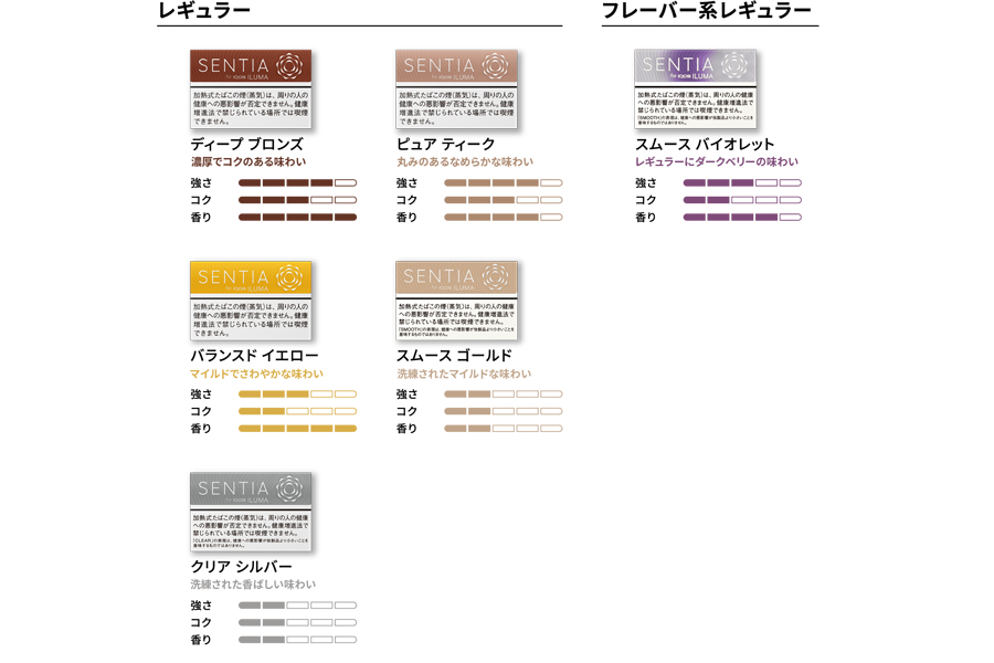 「センティア」の最新ラインアップ。これでフレーバー系メンソールは、シリーズ内の最大勢力になりました