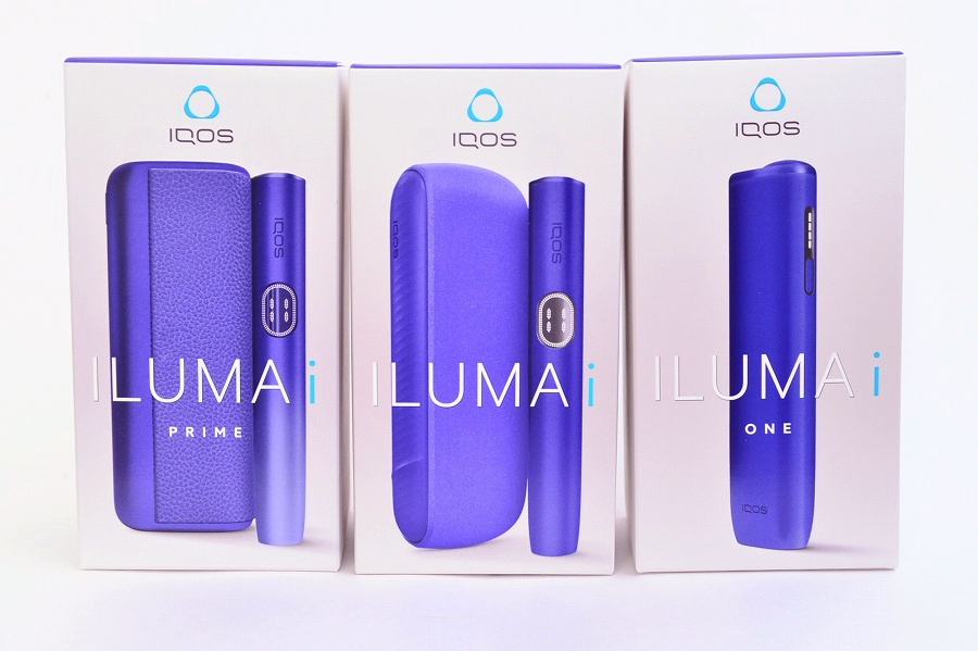 左から、「アイコス イルマ アイ プライム」「アイコス イルマ アイ」「アイコス イルマ アイ ワン」の新色「エレクトリックパープル」