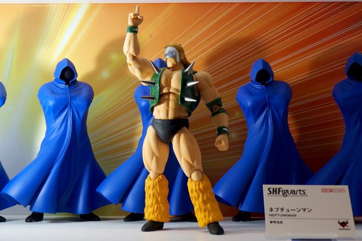 「METAL BUILD」「ネクスエッジスタイル」の新作、「聖闘士星矢」の新企画発表、プロレス技のために新開発された可動式の「キン肉マン」フィギュア、「美少女戦士セーラームーン」「カードキャプターさくら」のフィギュア、新商品「PROPLICA クリスタルスター」の発表などがあり、盛りだくさんの内容でした! また、「ワンピース」や「ドラゴンボール」のフィギュアは迫力がって印象的でした。撮影禁止でしたが「仮面ライダードライブ」や「艦これ」の新作、「らんま 1/2」のフィギュアなども展示されており、これからの登場がわくわくです。残念ながら商品化は実現しませんでしたが、出川哲朗さんのザリガニ芸の顔を3Dスキャンして作られた「魂バディーズ 出川哲朗」も展示されていましたよ。