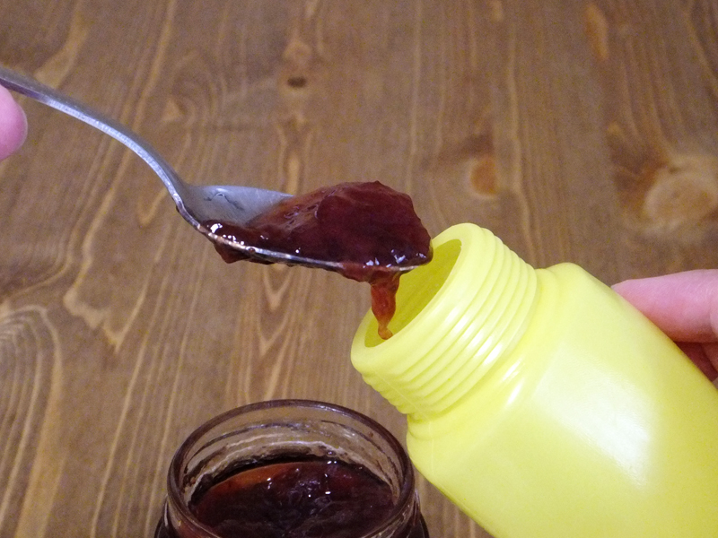 果肉が少なめのストロベリージャムをチョイスして、バナナに注入! ただ、味は……好みの問題かもしれませんが、正直あまり相性がよくないかなと感じました。ブルーベリーのほうが味は合うかもしれませんが、ホイップボトルのノズルに果肉が詰まる恐れがあるため、注意が必要です。