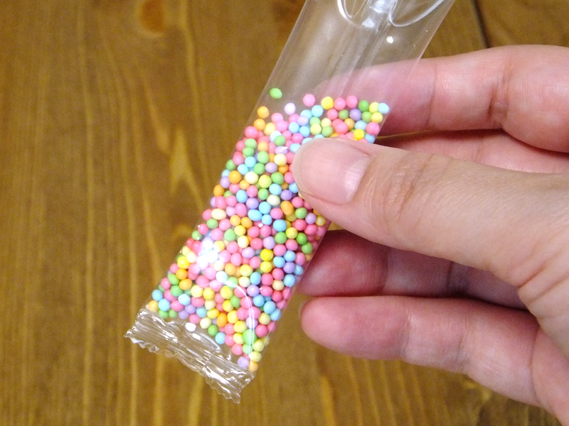 チョコホイップに飾り用のカラーシュガーを混ぜて注入してみました。カラーシュガーの食感がいいアクセントになるかも!