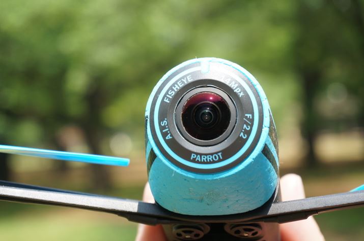 さらに、Bebop Drone は、重量約400gの軽量モデルながら、機体前方に画角180度の魚眼レンズを装備しており、空撮が楽しめるのも魅力。ワイドな画角のフルHD映像(1920×1080/30p)を記録することができます。3軸方向の電子式手ブレ補正機能を搭載しているので、傾きやブレを補正した動画を撮影できますよ。