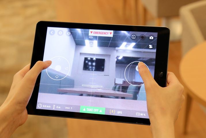 飛行の安定性能も高く、3軸加速度センサー、3軸ジャイロセンサー、3軸磁力センサー、超音波感度センサー、圧力センサー、対地速度計測用の垂直カメラから取得したデータを使って、機体を高度に制御することで、安定飛行を実現。制御に使用するコンピューターも高性能で、デュアルコアプロセッサーP7、クアッドコアグラフィックプロセッサーを搭載しています。