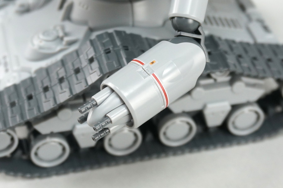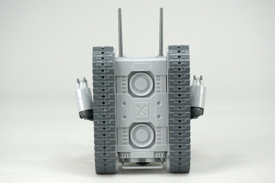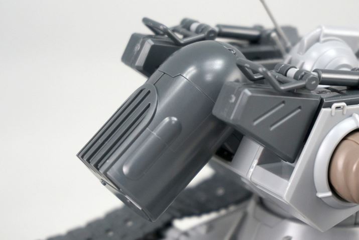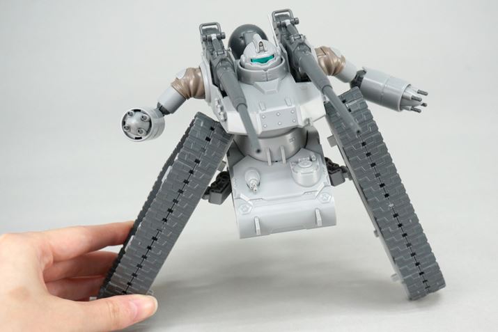 腕は肘と肩の部分が可動します。4連装機関砲(手首のような部分)は、くるくる回転させられるほか、左右にも動かせます