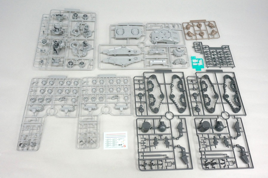 中身です。パーツの色が、薄い灰色、濃い灰色となっていて、戦車っぽさがありますね