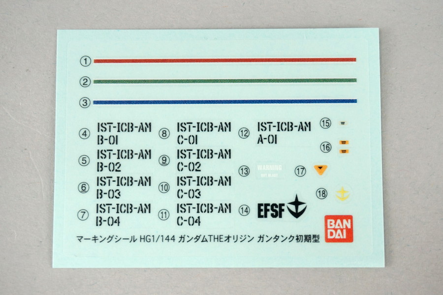 マーキングシールが付属していて、A小隊、B小隊、C小隊の好みの番号やカラーのラインを貼り付けられるようになっています