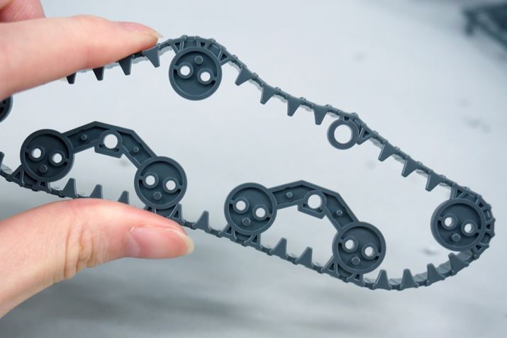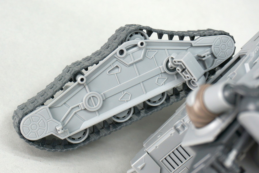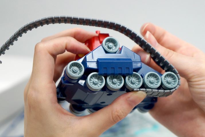 キャタピラーのベルト部分は、初めから輪になっていて、あまりやわらかくはない素材でした(RX-75 ガンタンクのベルト部分は、やわらかめでした)