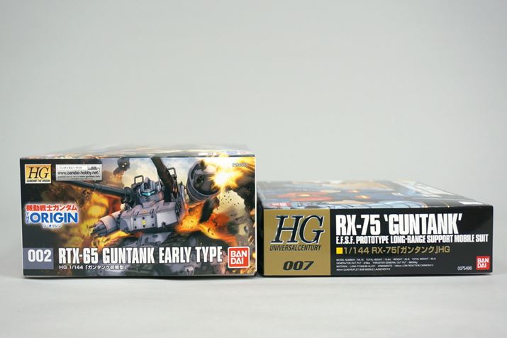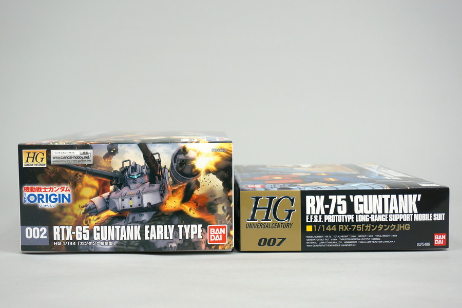 左がガンタンク初期型、右がガンタンク(RX-75)のHGシリーズのパッケージです。箱の大きさがぜんぜん違いますね