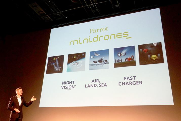 今回新たに加わった3シリーズ計5機種のミニドローンを紹介するクリス・ロバーツさん(JPAC地域担当バイス・プレジデント兼マネージング・ディレクター)、今年のクリスマスプレゼントはこれで決まり!という感じでした