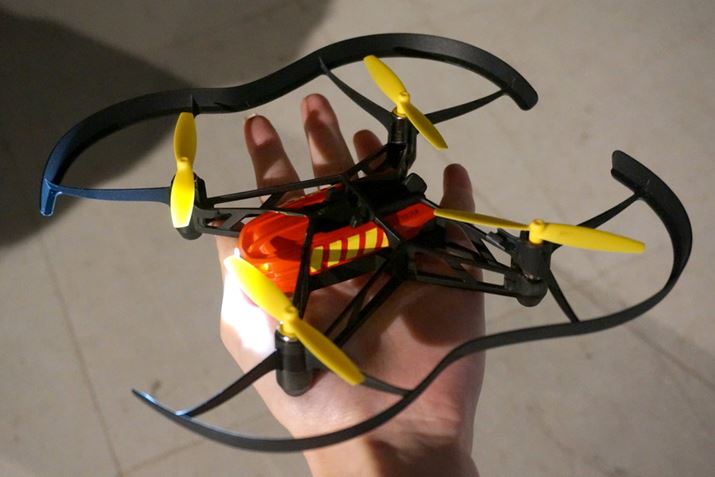 「Airborne Night」と「Airborne Cargo」の2機種が用意された、空中飛行型の「Airborne」シリーズ。従来の「AR Drone」や「Bebop Drone」よりも小さい超小型・軽量なクアッドコプターで、本体サイズは、ハル装着時で180(幅)×185(奥行)×40(高さ)mm(ハル非装着時は150×150×40mm)。重量は、ハル装着時で63g(ハル非装着時は54g)となっています。