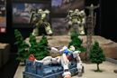 ジオラマの展示1。アムロが、盗んだガンダムを初めて動かすシーン!! ジオンのモビルスーツたちが狙っています