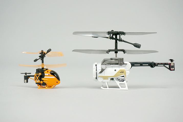 カメラ付き超小型ヘリコプター「ナノファルコンデジカム」。小さい機体にカメラが搭載されています。1つ目のロボットみたいですね