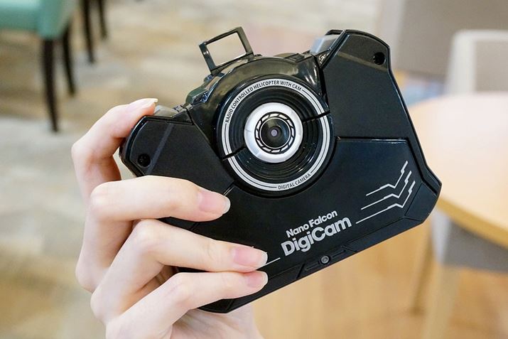 機体の小ささ、操縦の安定性、お手ごろな価格で、子どもや初心者にも人気のシー・シー・ピー「ナノファルコン」シリーズに、新モデル「ナノファルコンデジカム」(価格は8,980円・税別)が登場しました。これまでのナノファルコンたちと同じく、手のひらサイズですが、本体にカメラが搭載されていて、飛ばしながら動画を撮ったり、写真を撮ったりできるようになりました。