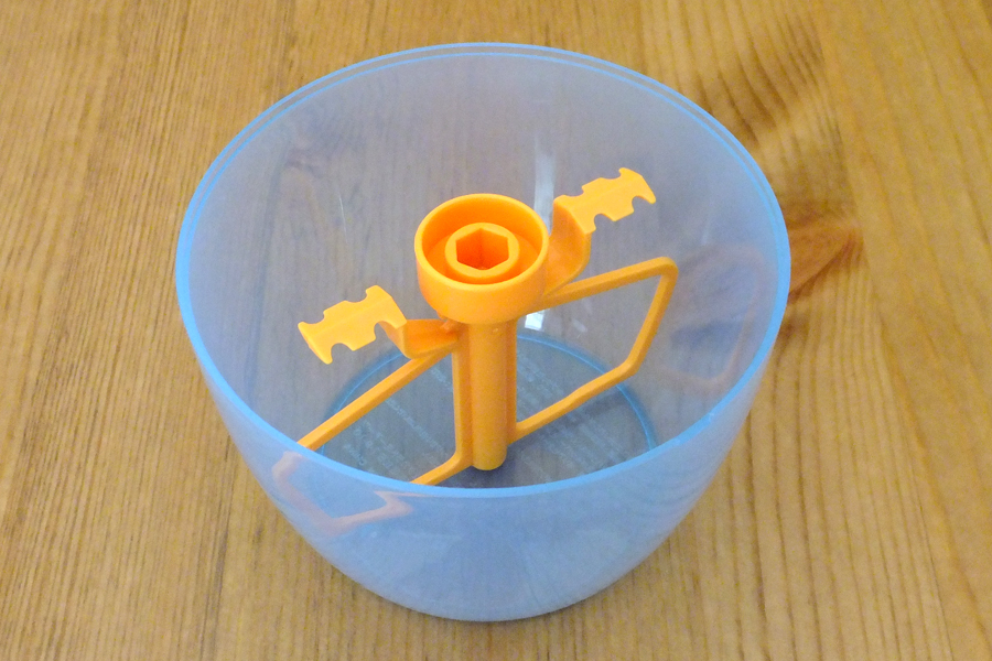 本体の上半分を外したところ。オレンジ色の羽で卵白を泡立てます