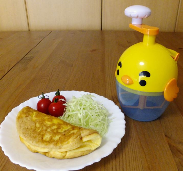 「ふわしゅわびっくり!レッツ!オムレッツ」がどれだけの働きをしてくれるのか、正直なところ懐疑的でしたが、予想以上のふわふわ生地を作ってくれたことに驚きました。卵白の泡立てはほかの方法でもできますが、道具の準備や後片付けがかなりめんどうなはず。卵を直接割り入れると卵白が落ちていかないなど一部使い勝手に難アリだったものの、ボウルや泡立て器などの洗い物を増やすことなく新食感のオムレツができるのは助かります。かわいらしい見た目も◎! 鳥好きの方にとっては、飾れる調理器としてもお気に入りになりそうです。