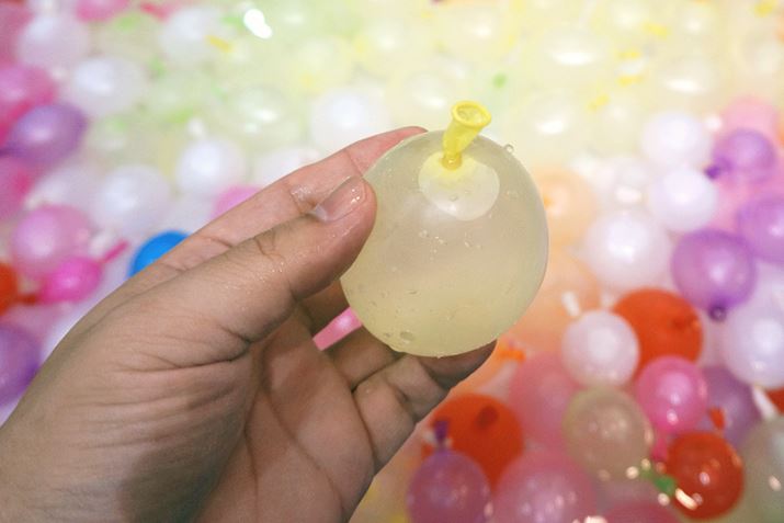 手のひらサイズの水風船が簡単に作れる。デモンストレーションでは水道の水圧が低かった影響で、できあがるのに1分近くかかったが、それでも短時間で大量に作れるのはラク