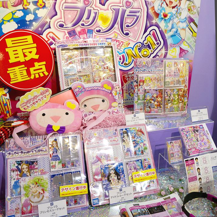 2014年7月にショッピングセンターなどで楽しめる女児向けアミューズメントゲームとして登場した「プリパラ」。ファッションコーデとリズムゲームを楽しみながらアイドルのランクアップを目指していくもので、10月には登録者数が200万人を突破した人気のゲームだ。10月には映画が公開され、ニンテンドー3DS版も発売されている。そんなプリパラの関連グッズも展示してあった。