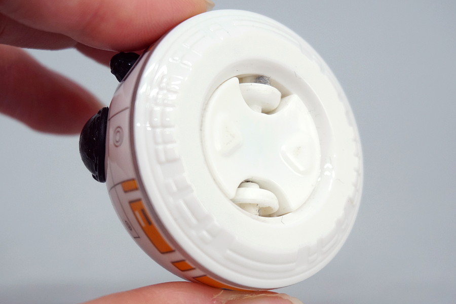 充電ベースには、microUSBポートのほかに、小さなボタンも搭載してあり、これを押すと充電中でもBB-8が首をくるくる動かしていてかわいい