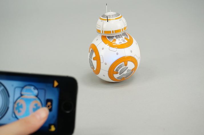 映画の公開の前に、スマートフォンなどのアプリから動きを制御できるラジコンロボットおもちゃ「Sphero」や「Ollie」を発売しているSpero社より、「BB-8」が実際に動くミニチュアのおもちゃとしてすでに発売されています。価格は21,384円(税込)。ドロイドらしく、BB-8自身で動き回ったりするような自律的な動きができたり、アプリを利用して “ホログラフィック” 風のコミュニケーションができたり、音声認識にも対応しています。