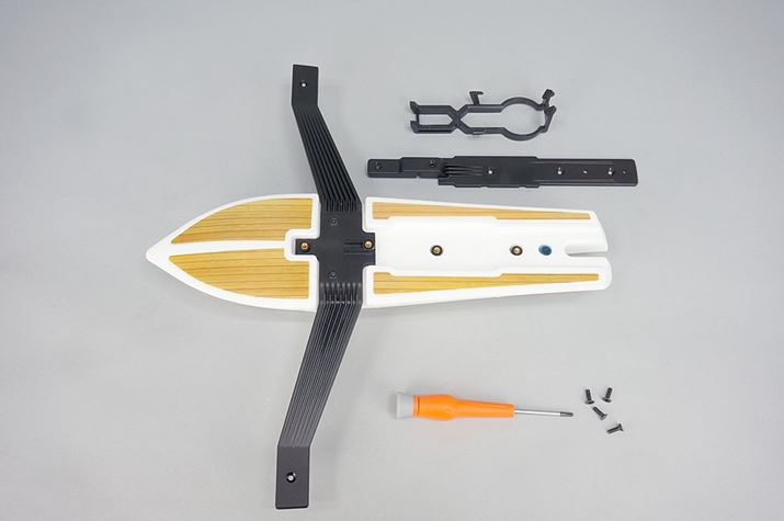 Hydrofoil Droneの船体は組み立て式になっています。組み立てに難しいところはありません。