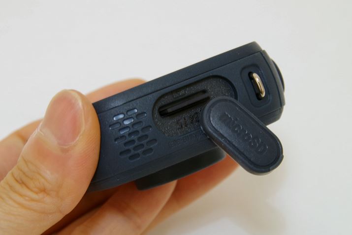 microSD/SDHCに対応したカードスロットを搭載。内部メモリーは128MBだけですが、カードを挿せば32GBまで保存が可能