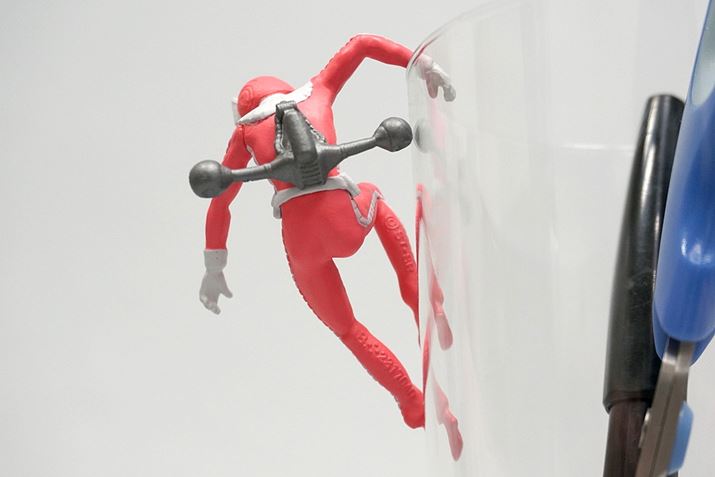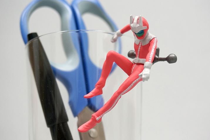戦いが得意で、信念があって、女性からもモテて、赤い服とツノが大好き、男性の憧れシャア・アズナブルさん。アニメ本編ではだいたいかっこよくて(たまにアムロに押され気味であせったりしているときもあった)、彼の名言はガンダムファン以外にもよく知られていて、有名ですよね。そんな彼がぶら下がったり、腰かけたり、キリッとした表情でカードを立ててくれたり、なぜか小物を持ってくれたりしてくれているギャップがかわいいですよね。どれも5 〜7cmくらいの大きさで、体の動きや、マスク、ヘルメット、衣服の細部まできれいに立体化されています。