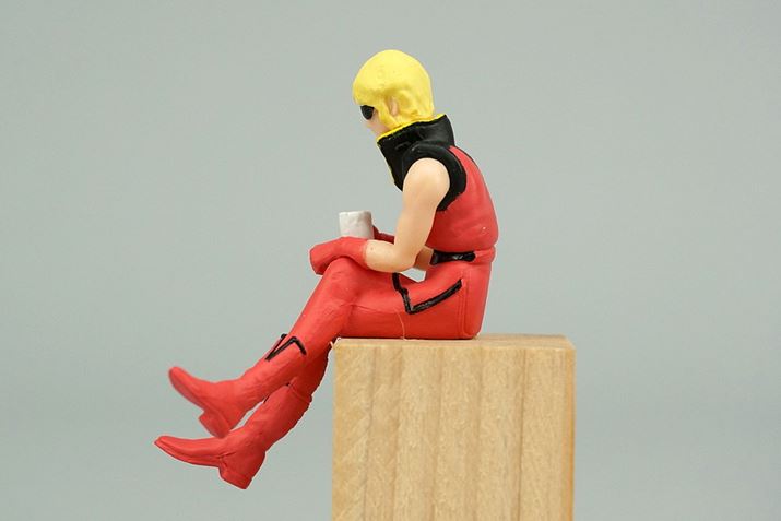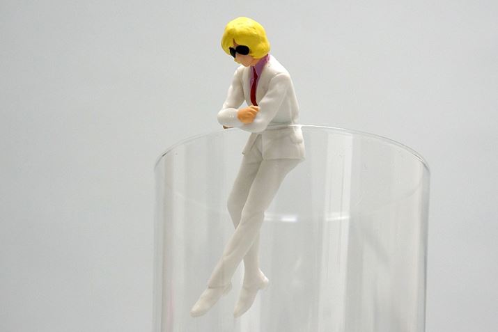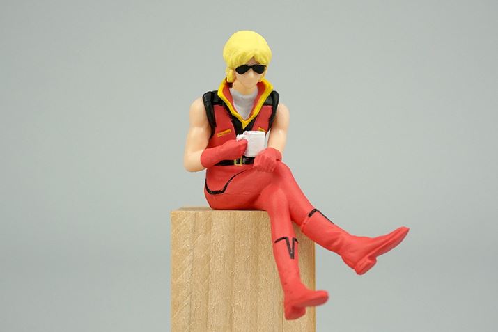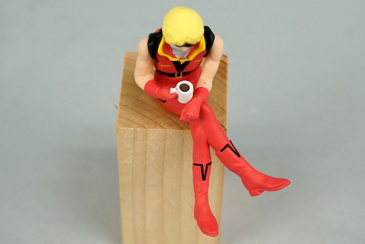 赤いノースリーブでおなじみのクワトロ大尉です。コーヒーみたいなの飲んでいます。「腰かける!!」って実用性がゼロですごくいいですね。今のわたしは腰かける。それ以上でも、それ以下でもない。