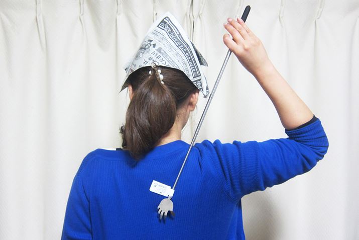 こうやって背中をかくと、家康の気分。「孫にのんびり背中をかかせることができるとは。天下泰平、最高じゃ」とか言ってそう