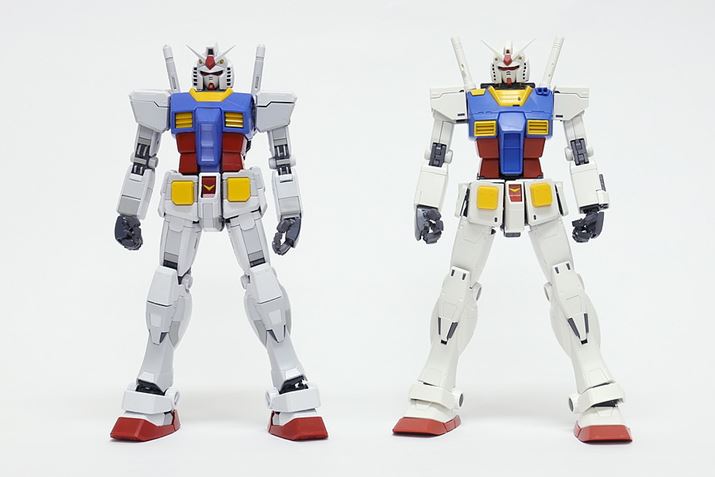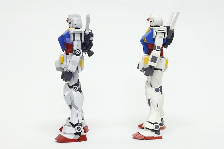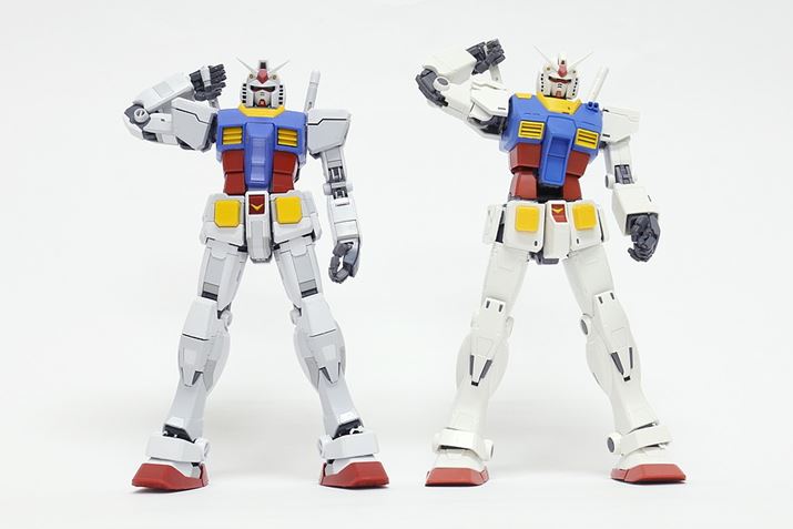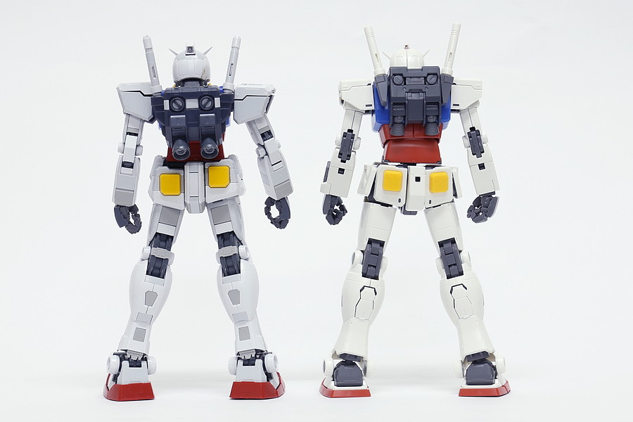 MGガンダムVer.3.0との比較。左がMG ガンダム Ver.3.0で、右がTHE ORIGIN版(これより以下の写真もその並び方です)