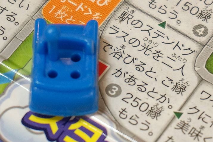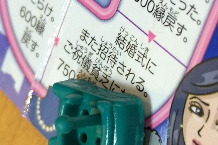 「出雲縁結びポケット人生ゲーム」は1stステージと2ndステージに分かれていて、1stステージ → 2stステージの順番でプレイするのが基本的な遊び方(どちらか片方だけでも遊べます)。プレイ時間は約2時間、プレイ人数は2〜4人です。ベーシックな人生ゲームと進め方は同じで、ルーレットで出た数だけコマを進め、止まったマスの指示に従います。ベーシックな人生ゲームでは“円”をやり取りしますが、このゲームでやり取りするのは“縁”なのがポイント。最後に、いちばん多くの“ご縁”を持っていたプレイヤーの勝ちとなります。自身のスキルや結婚相手との相性などが“ご縁”に換算される仕組みになっているので、自分の魅力につながるスキルを手に入れたり、できるだけ多くの男性と出会って、職業や相性を考慮してよりよい結婚相手を見つけることが大事になってきます。リアルだなあ。