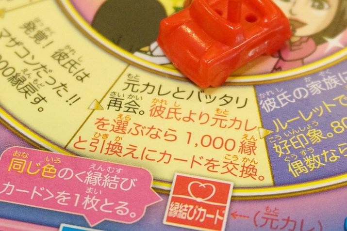 恋愛における“あるあるネタ”マスが多いので、仲のいい女子同士でプレイすると、恋バナを話し始めるきっかけにもなりそうです。今回、編集部でプレイしたように、「わたし浮気されるの全然いいです」「強引な人が好き、ドSたまらん」など、プレイヤーの意外な恋愛観を知れることも。プレイ時間が2時間と長めなので、ちょっとダラッとお酒を飲んだり、お菓子を食べたり、おしゃべりしながら楽しむのにちょうどよさそうですね。