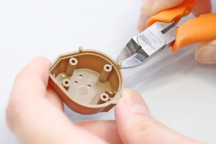ニッパーを使って、2回に分けてカットします。1回目はゲートの横をカットします