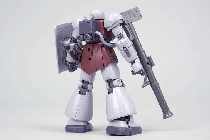 後ろはこのような感じ。がっしりしていて強そう。劇中のミノフスキー博士のイメージ動画では、宇宙を俊敏に飛び回っていましたね。背中のバックパック(ランドセル)は、ザクよりもちょっと小型のような気がします