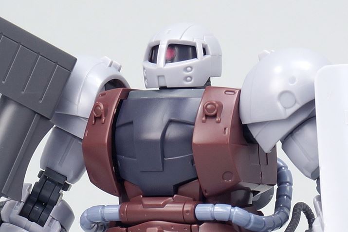 頭部はモビルワーカー(「機動戦士ガンダム THE ORIGINU 哀しみのアルテイシア」に登場する人型機動兵器)に似ています。モノアイはシールで表現されています。モビルワーカーから引き継いだ部分はほかにも多そうです