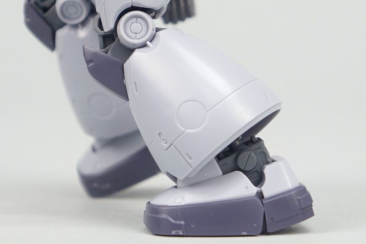 グレーを基調としたシンプルなカラーリングは兵器っぽさがあり、脚部などには細かい筋彫りの描写(モールド)が多く、完成すると丈夫でがっしりとした雰囲気になります。モールドとパーツのつなぎ目が連続しているので、つなぎ目の溝が気にならない構造がいいですね。脚部はパーツ同士の接する面が、表面に対して垂直ではなくななめになっているので、つなぎ目の部分が影になりすぎず、モールドと同じような見た目になるのかなと思いました。