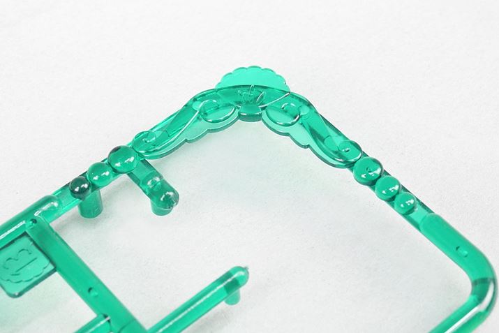 パーツの枠(ランナー)にも細やかな遊び心が! 貝殻や真珠がデザインされています。組み立て時の気持ちも盛り上がりますね!