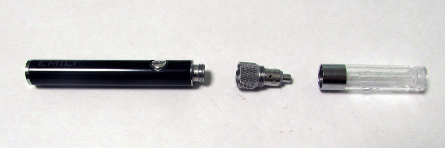 3ピース式の「EMILI mini」。2本入りで、充電器の役割を果たす専用ケースと合わせても52gと軽量だ。リキッド10本付きを4,000円程度で入手できた