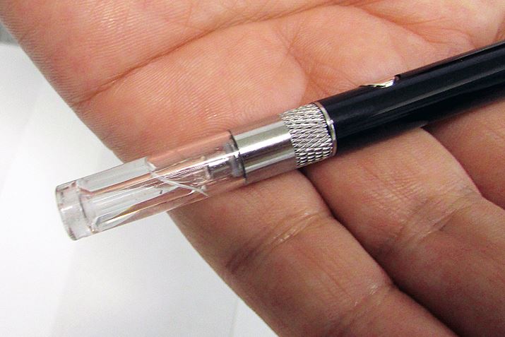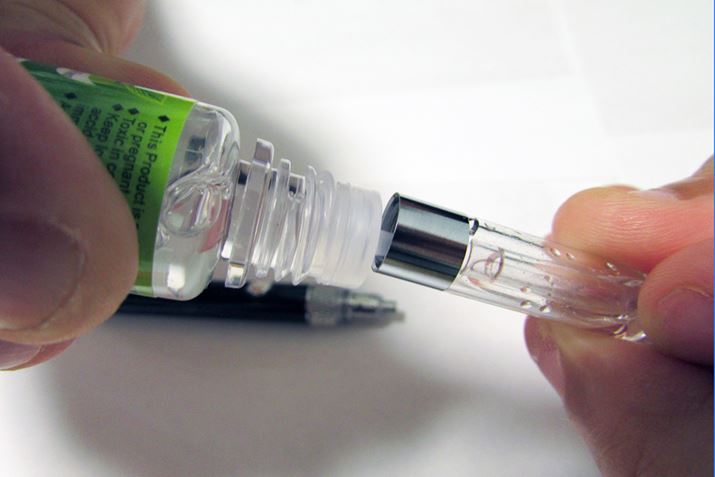 リキッドをこぼさないよう本体にセットすれば準備完了だ。アトマイザーコイルにリキッドが十分に染み込むまで、2 分程度待つ
