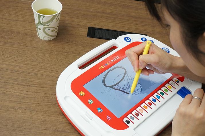 大きくなってからも長く遊べるおもちゃとして作られた「おえかきアーティスト」は、大人でも(むしろ、絵を描かなくても)「おもしろいね、かわいいね」と楽しめる製品になっていると感じました。