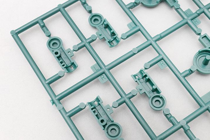 手や足など、左右があるパーツの内側やランナーの裏側に「R」と「L」の表記が。組み立てている途中に「あれ?これ左右どっちのパーツだったっけ??」と迷うことがないので、スムーズに組み立てることができます