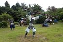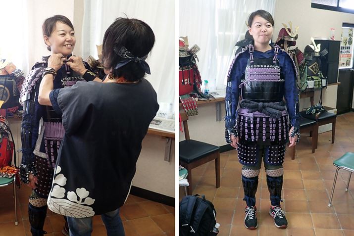 着付けは5分程度。なかなかサマになっている!(自画自賛!!) このあと、脇差しと刀2本を装着し(もちろんレプリカ)、兜をかぶれば合戦の地へ向かう準備は完了