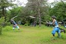東軍・大野治長軍の兵士、団九郎兵衛と戦ってみた。甲冑を着ていると、こういう時にサマになる! ところで、団九郎兵衛はなぜ裸? と思われた方もいるだろう。通説は2つあり、1つは肉体を見せびらかしたかったから。そして、もう1つはギャンブルで負けて甲冑類を手放したからと言われている。どちらにしても、ちょっとヤバイ(笑)